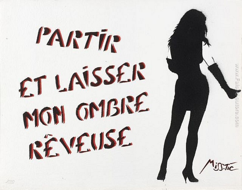 Possiedi la riproduzione di 'Partier et laisser mon ombre rêveuse' di qualità da museo realizzato a mano su tela da Miss.Tic. La riproduzione verrà realizzata da un àrtista esperto. Avrai anche la possibilità di personalizzare l'opera con differenti dimensioni e cornici.
