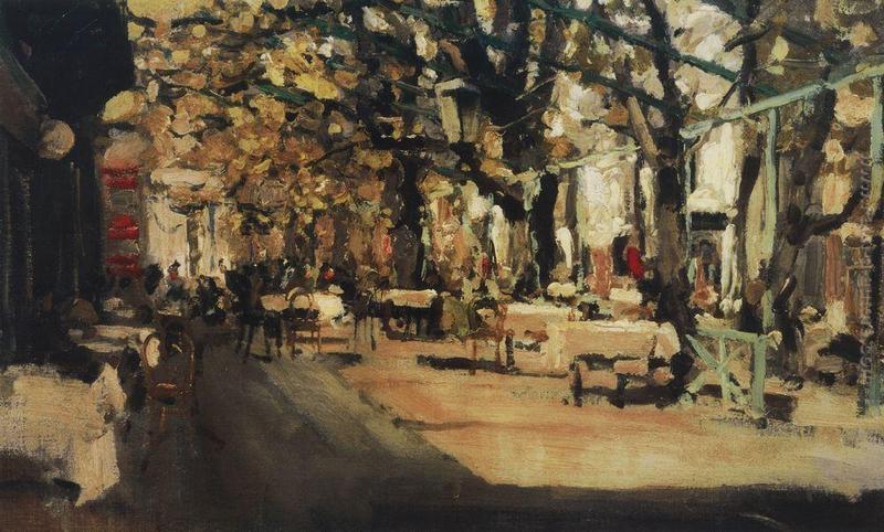 Possiedi la riproduzione di 'Cafe a Yalta' di qualità da museo realizzato a mano su tela da Konstantin Korovin. La riproduzione verrà realizzata da un àrtista esperto. Avrai anche la possibilità di personalizzare l'opera con differenti dimensioni e cornici.
