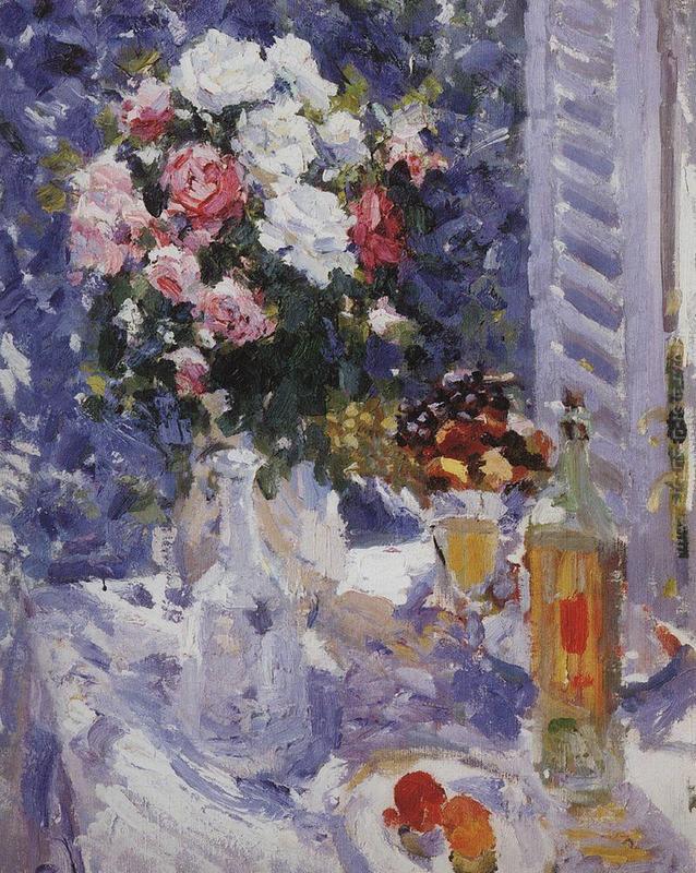 Possiedi la riproduzione di 'Fiori e Frutta' di qualità da museo realizzato a mano su tela da Konstantin Korovin. La riproduzione verrà realizzata da un àrtista esperto. Avrai anche la possibilità di personalizzare l'opera con differenti dimensioni e cornici.