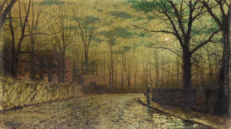 Possiedi la riproduzione di 'Figura su una corsia al chiaro di luna' di qualità da museo realizzato a mano su tela da John Atkinson Grimshaw. La riproduzione verrà realizzata da un àrtista esperto. Avrai anche la possibilità di personalizzare l'opera con differenti dimensioni e cornici.