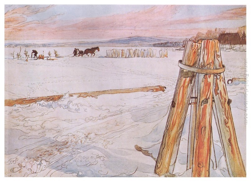 Possiedi la riproduzione di 'Raccolta ghiaccio' di qualità da museo realizzato a mano su tela da Carl Larsson. La riproduzione verrà realizzata da un àrtista esperto. Avrai anche la possibilità di personalizzare l'opera con differenti dimensioni e cornici.