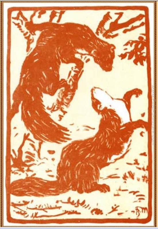 Possiedi la riproduzione di 'Giocare donnole' di qualità da museo realizzato a mano su tela da Franz Marc. La riproduzione verrà realizzata da un àrtista esperto. Avrai anche la possibilità di personalizzare l'opera con differenti dimensioni e cornici.